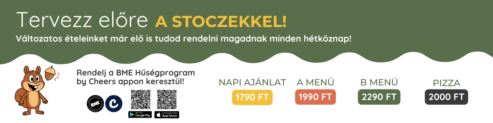 Mostantól lehetőséged van kedvezményesen heti szinten előrendelni az ebéded a Stoczek Menzán – egyszerűen és kényelmesen a BME Hűségprogram by Cheers applikáción keresztül.